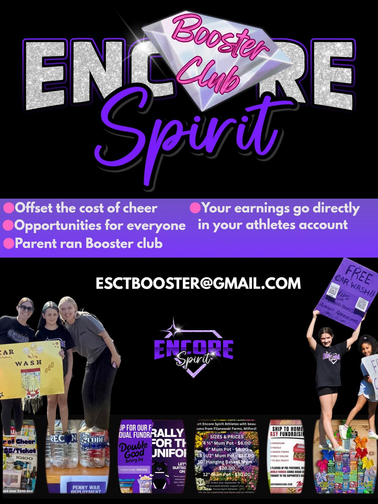 The Encore Spirit Booster Club is here to help families make all star cheer more affordable!